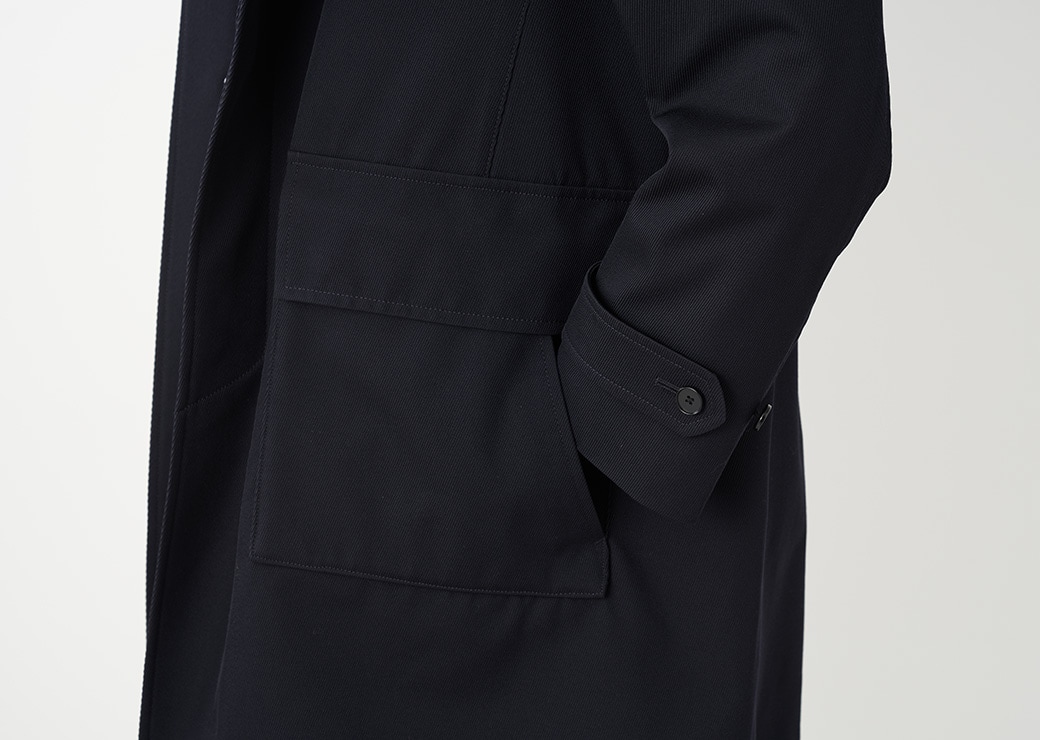 フラップを閉じたままでも手を入れられる「ハンドウォーマーポケット」付き。ポケットの内側は起毛素材なので、寒い通勤時に嬉しいディティール。