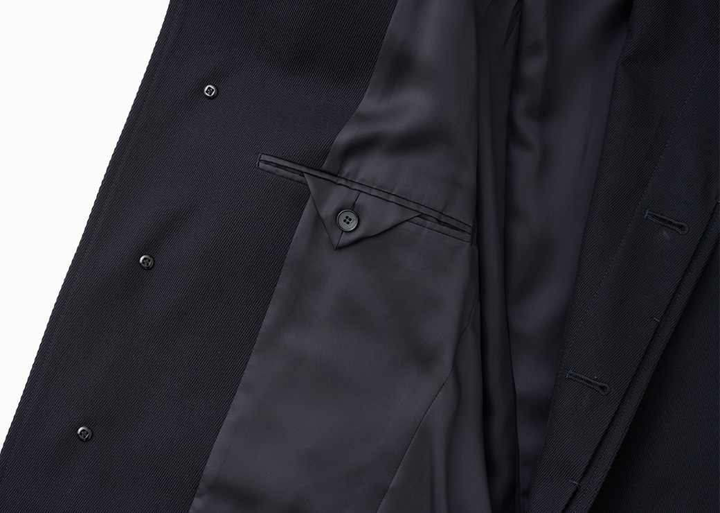 コートの裏地は、高級感と実用性を兼ね備えたキュプラ生地。袖通りが良く、静電気が起きにくいのが冬場に嬉しい。