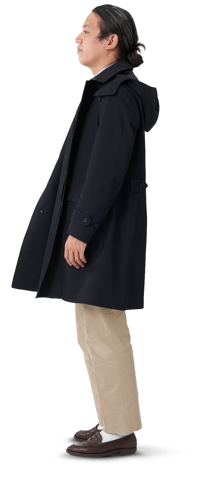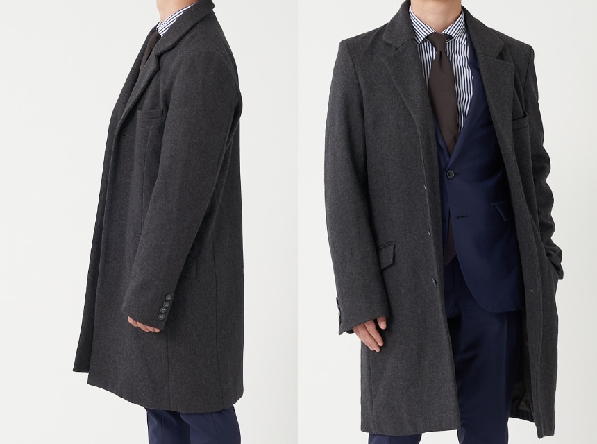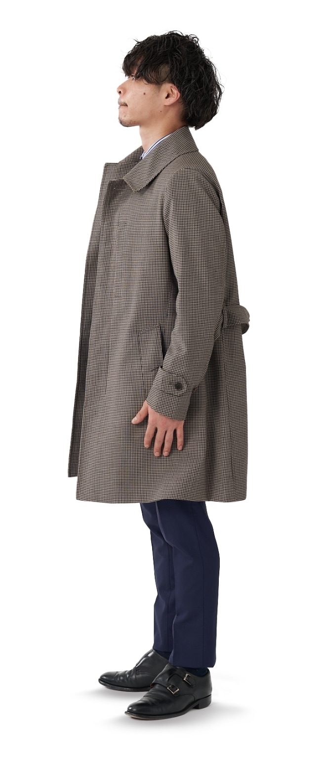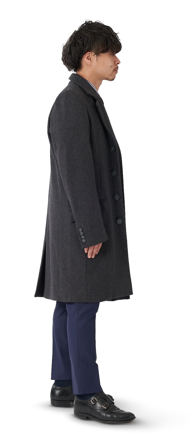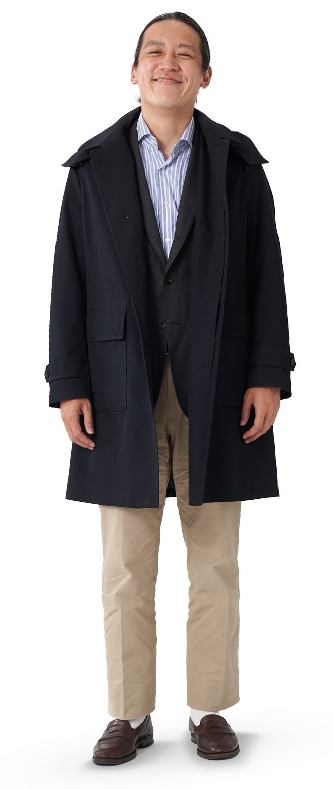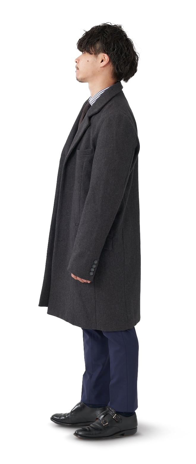 FABRIC TOKYOのオーダーコートは、登録済みの“オーダージャケット”の上から羽織ることを想定したゆとりでサイズを算出。ジャケットの上に羽織っても、厚手のニットを着込んでも、窮屈になりません。