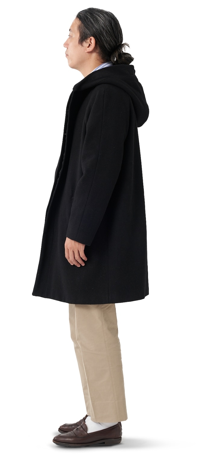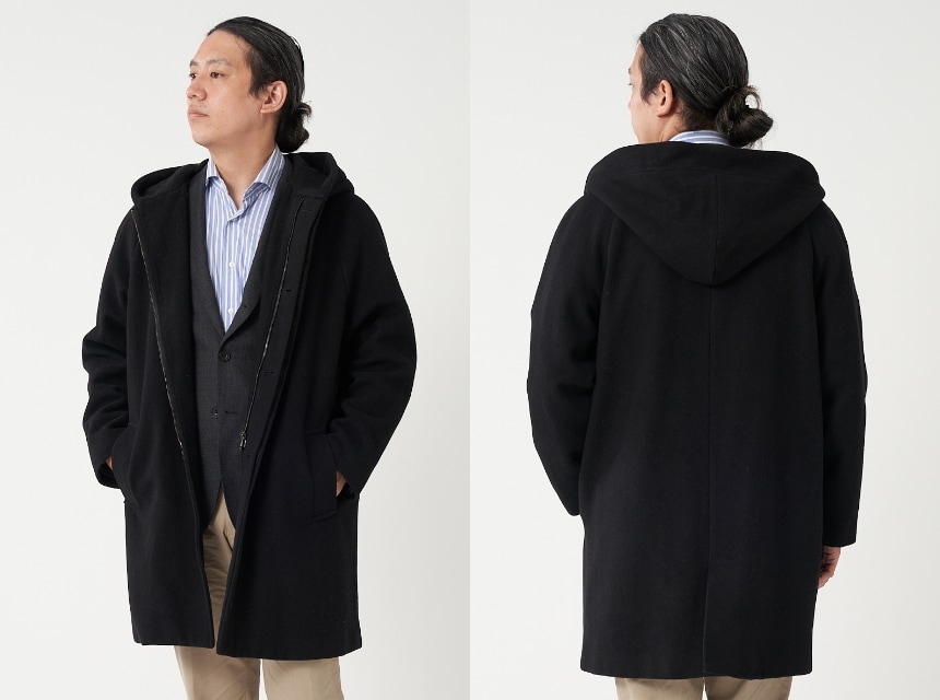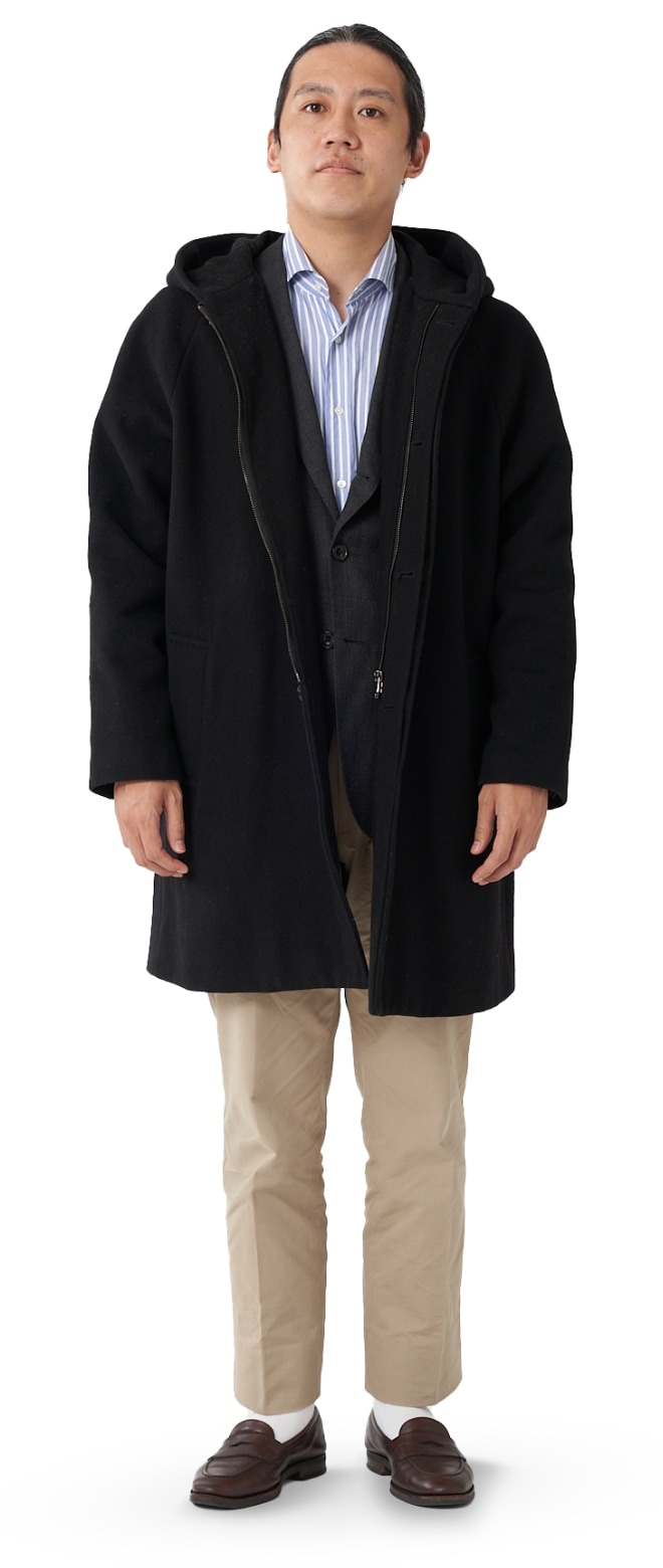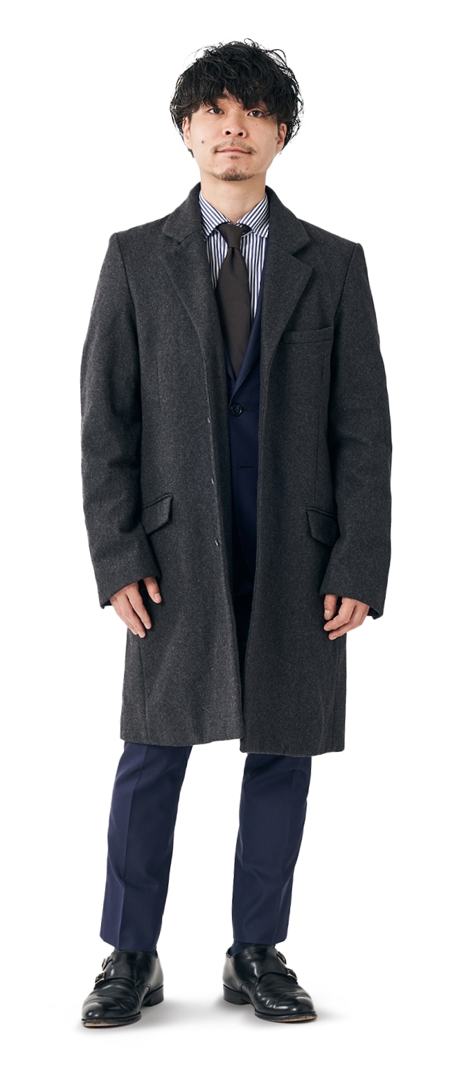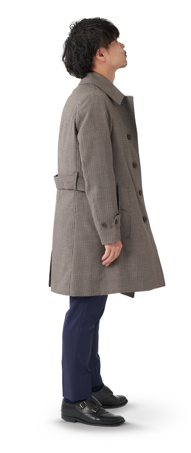 FABRIC TOKYOのオーダーコートは、登録済みの“オーダージャケット”の上から羽織ることを想定したゆとりでサイズを算出。ジャケットの上に羽織っても、厚手のニットを着込んでも、窮屈になりません。