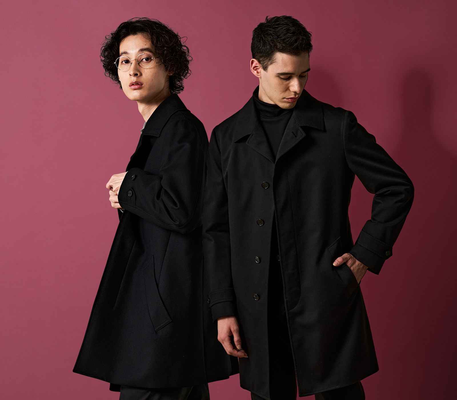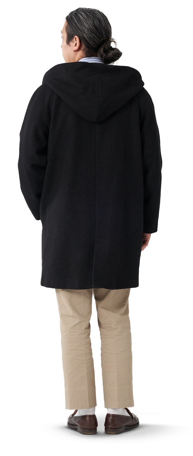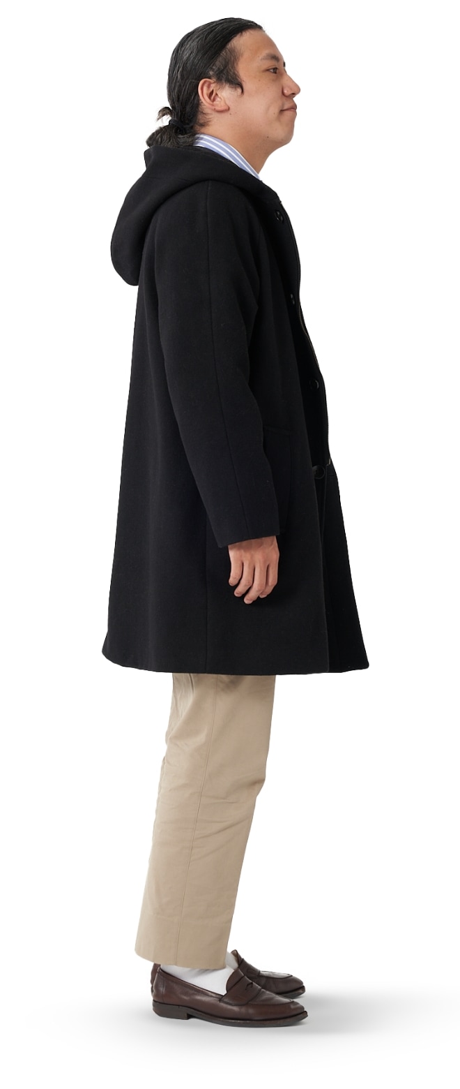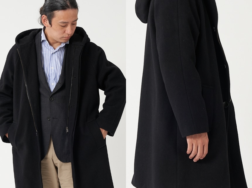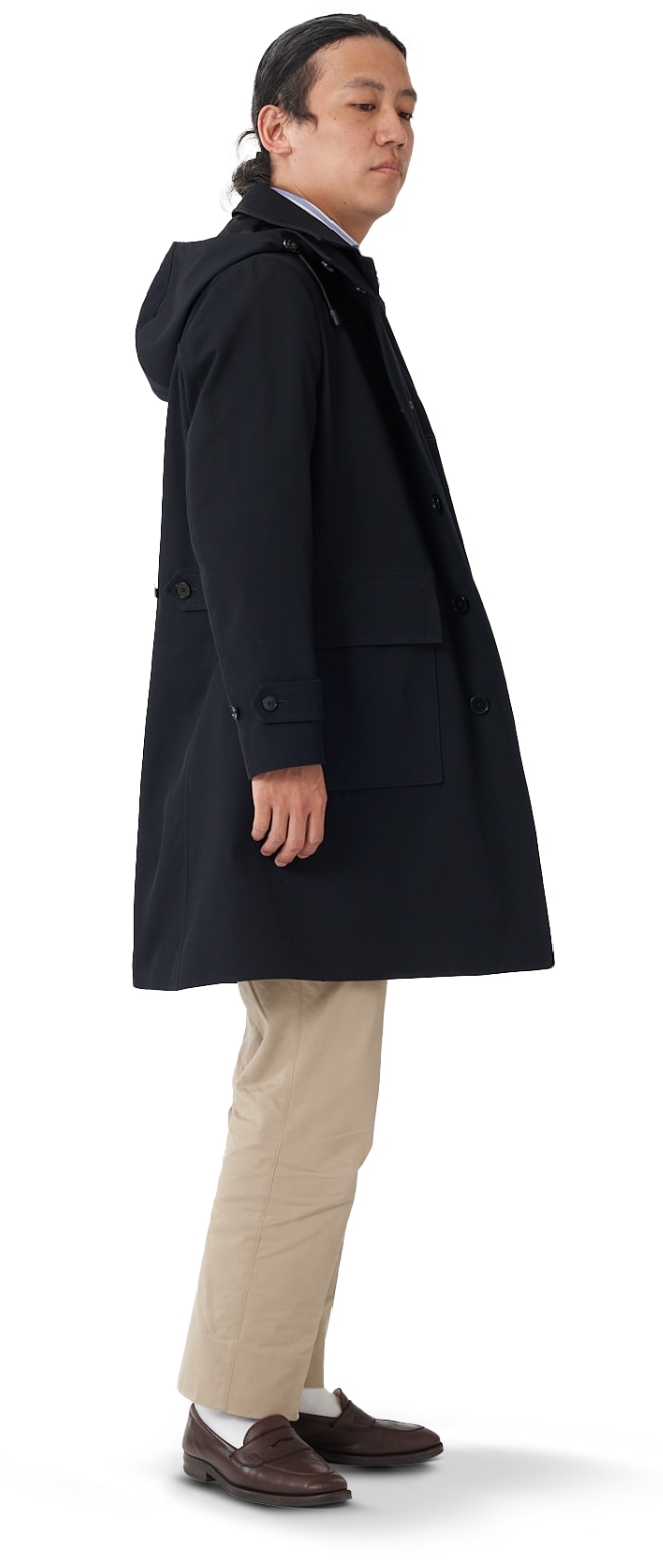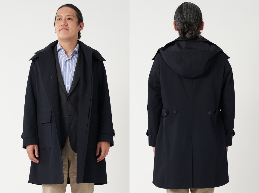 FABRIC TOKYOのオーダーコートは、登録済みの“オーダージャケット”の上から羽織ることを想定したゆとりでサイズを算出。ジャケットの上に羽織っても、厚手のニットを着込んでも、窮屈になりません。