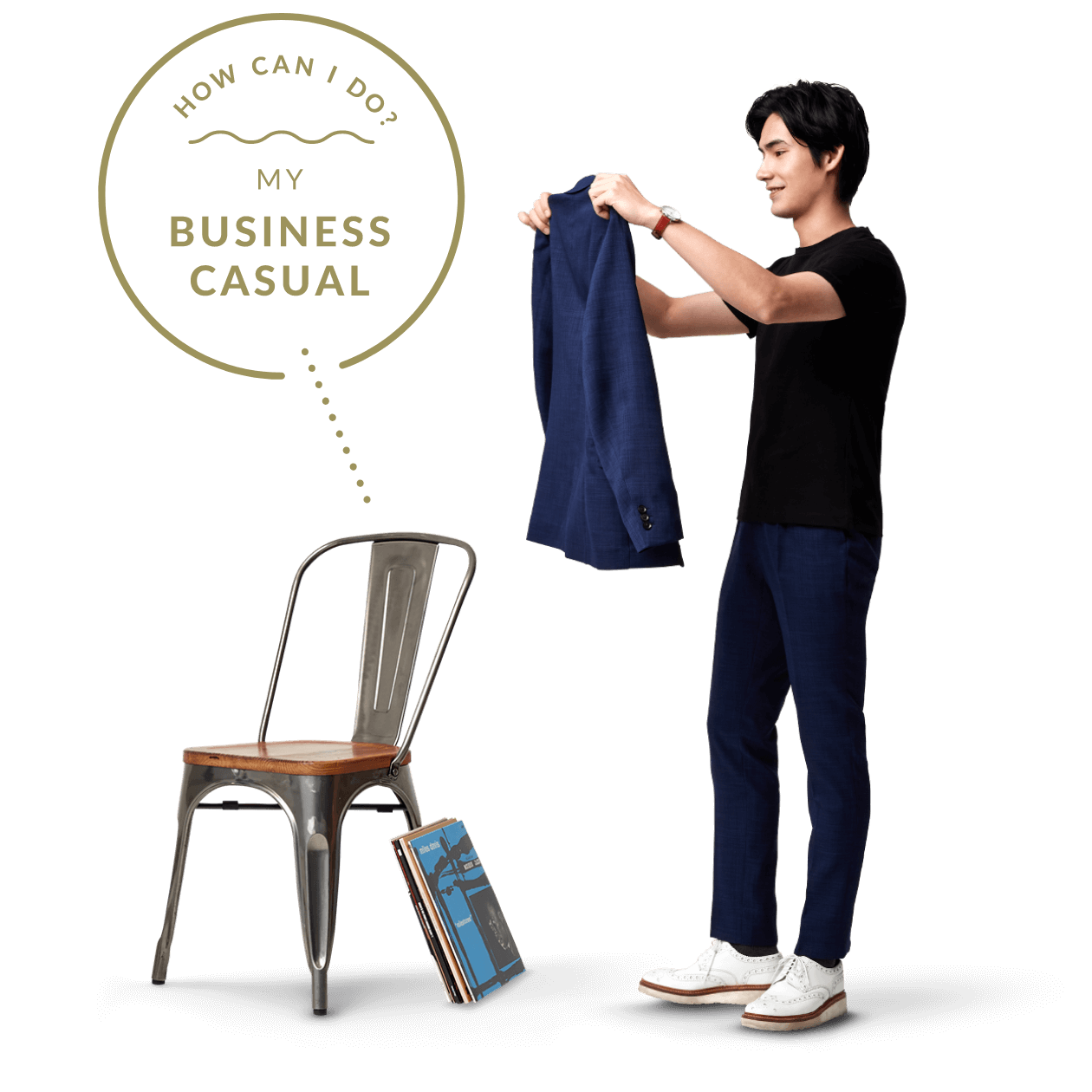 そこで、あなたに合ったビジネスカジュアルスタイルを見つけていただけるよう、いくかの着こなしをご紹介します。