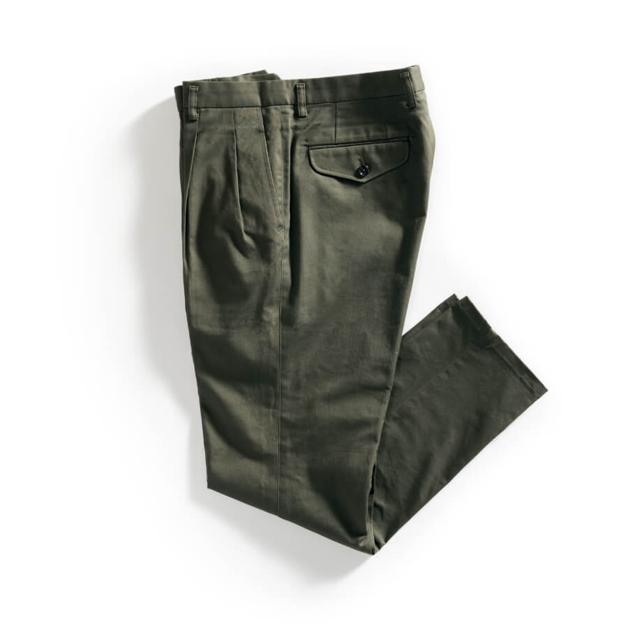 カジュアルになりすぎず、ビジネスシーンでも使いやすい、スラックスのような風合いのチノパン。スマートなシルエットにすることで、きちんとした印象を与えてくれます。