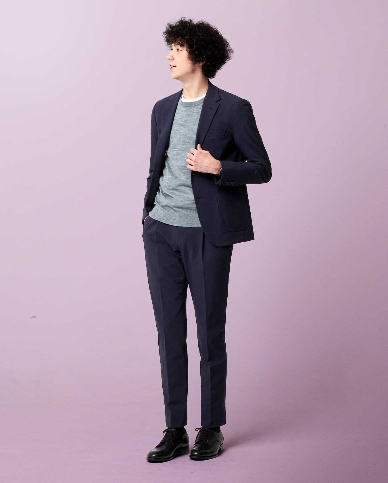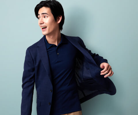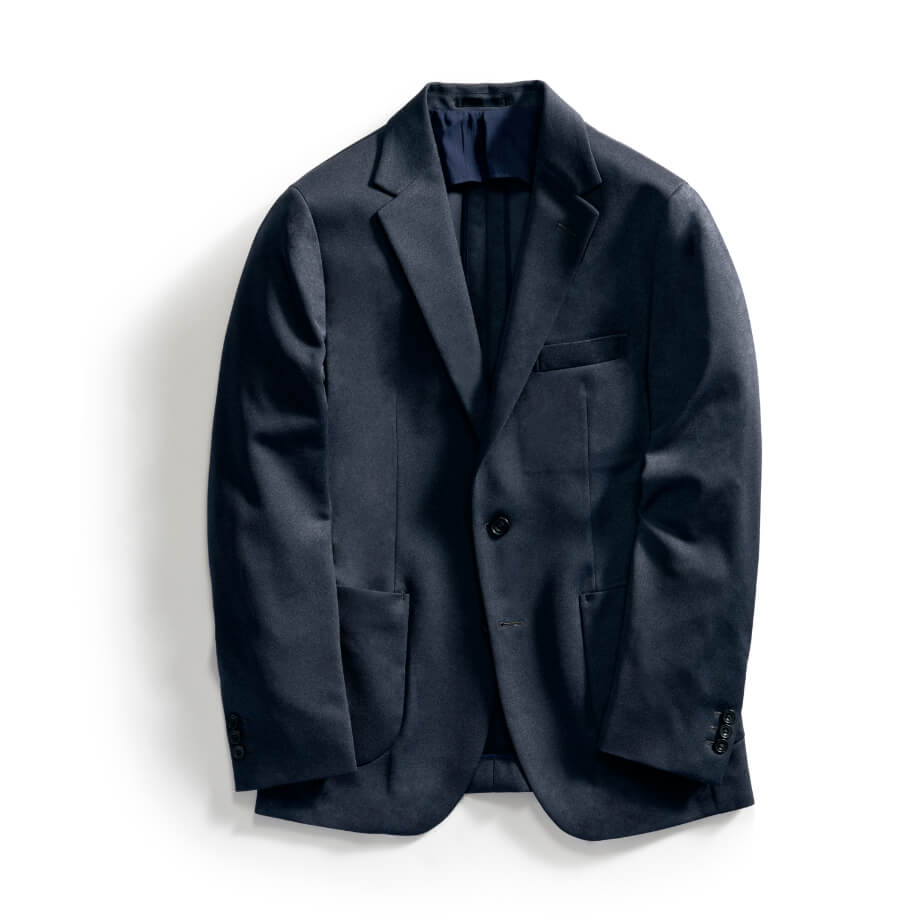スーツのジャケットにある肩パッドや芯地を取り除いた、夏でも涼しい軽量ジャケット。リモート会議など、家でも着ていただきやすいアイテムです。
