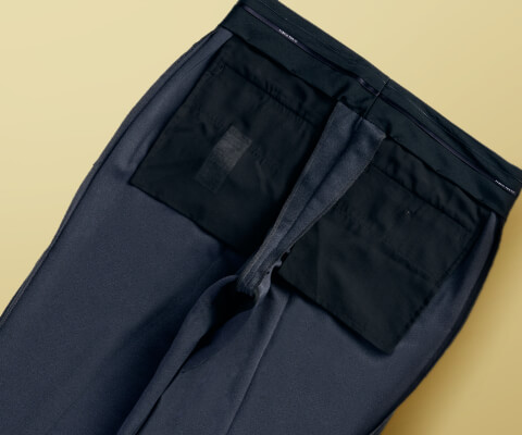 裏地をなくすことによって、軽くて通気性のあるつくりになっており、夏用のスラックスとしても大活躍するアイテムです。