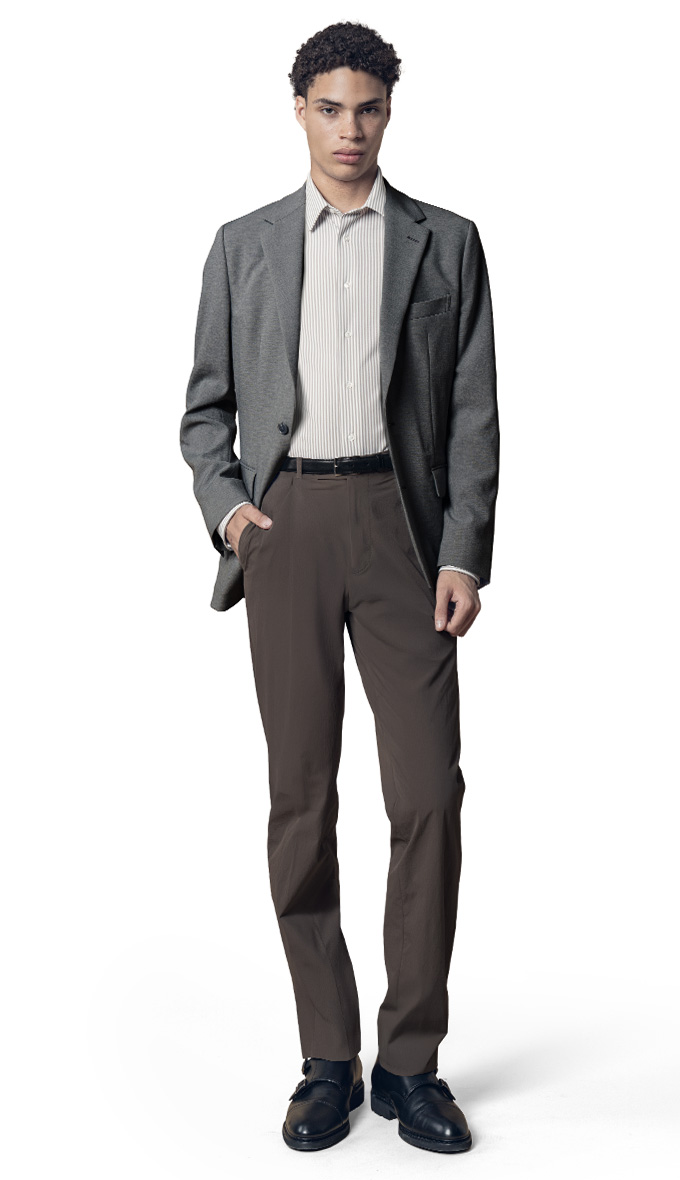 色を選ぶだけで、ジャケットとパンツの組み合わせがすぐ決まる。完成イメージを確認しながら選べるから、迷わず安心。
