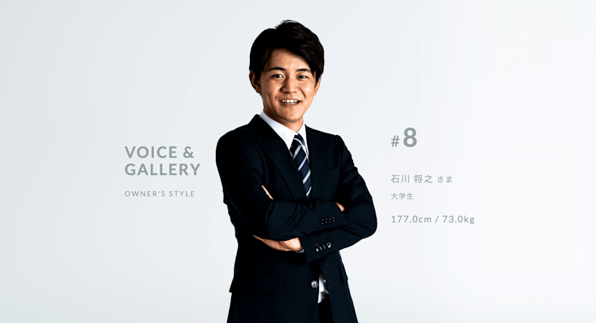 石川さま:今は大学生ですが、少しずつスーツを着る機会が増えてきました。今回オーダーしたスーツは、ONとOFFをハッキリさせてくれます。