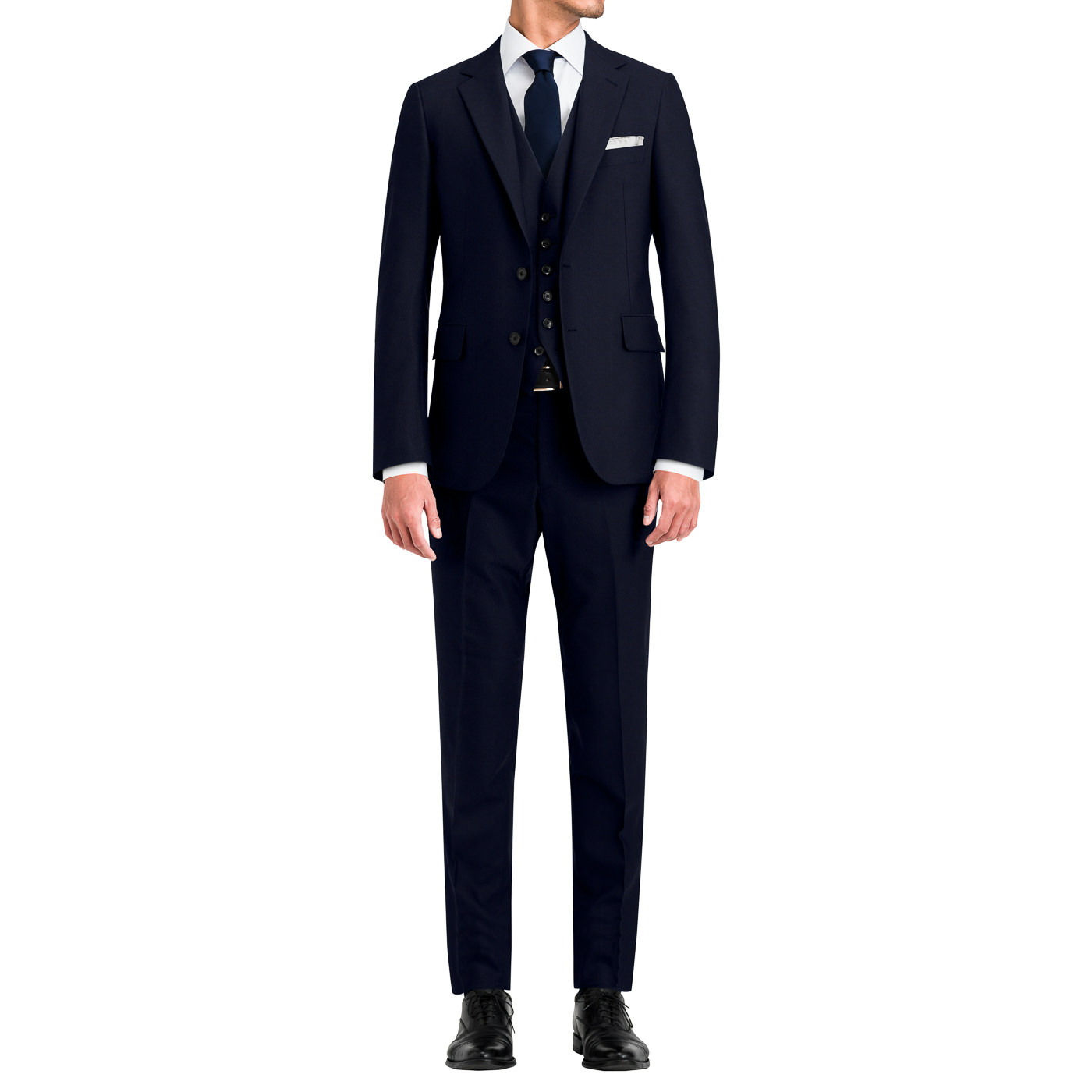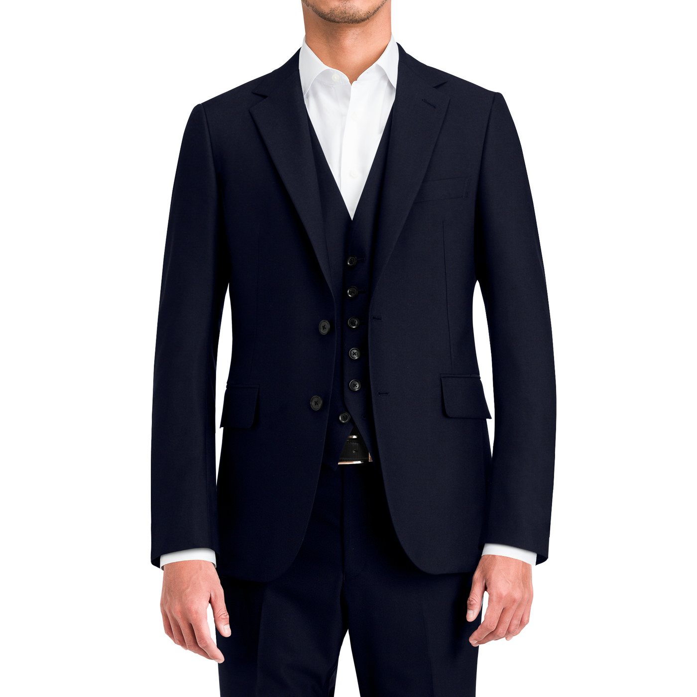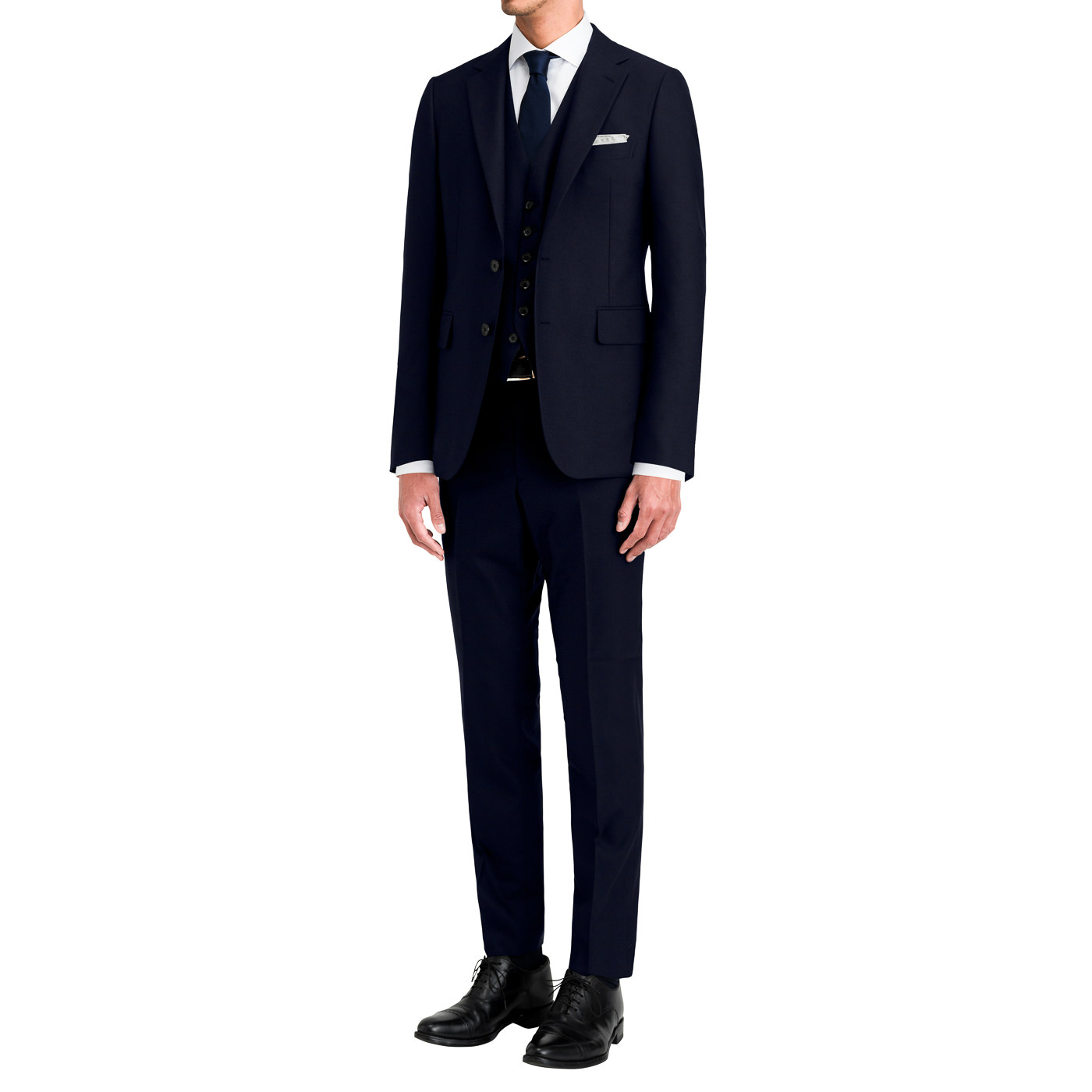 正統派の3ピースで、トラディショナルな印象に。これで英国から役員が来ても問題無し。